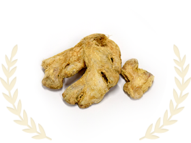 ショウガ科のショウガの根茎でときに周皮を除いたものです。日本及び中国で古くから香辛料、薬用として用いられ、ヨーロッパでも古くから香辛料と用いられてきました。胃腸をあたため、発汗、食欲増進に用いられ、胃腸薬、風邪薬などに高頻度で配合されています。